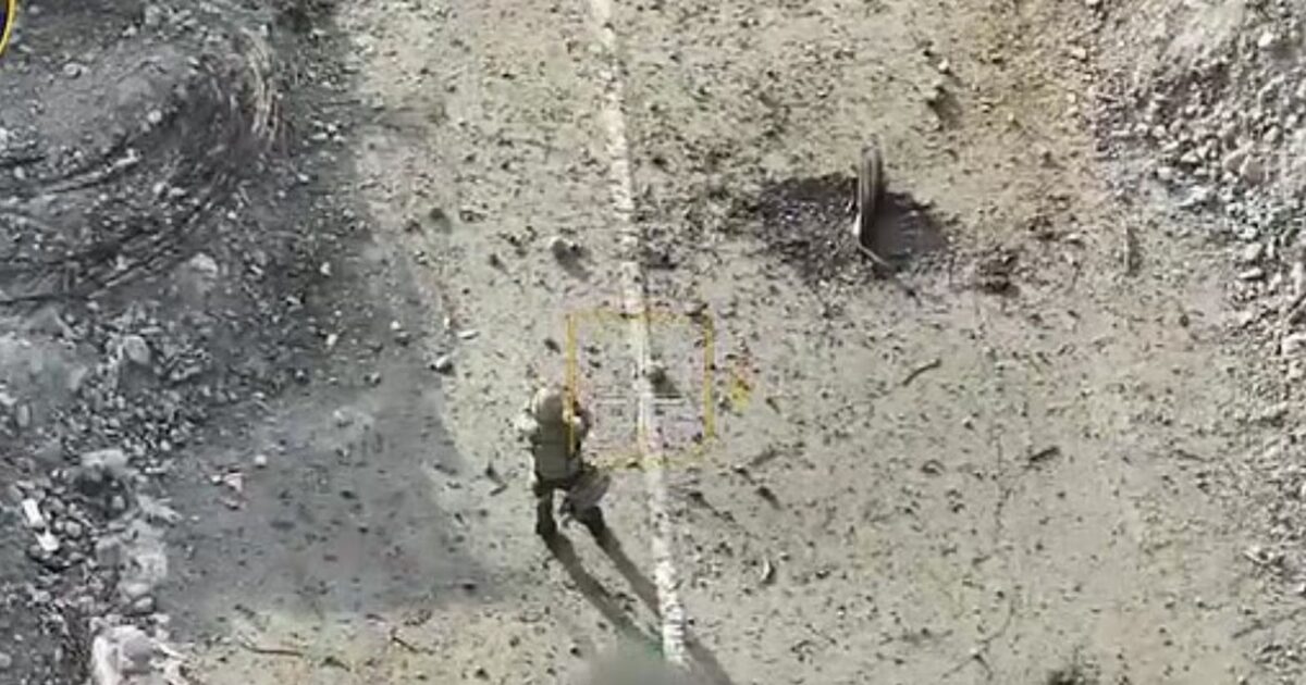 Σοκαριστικά πλάνα που δημοσιεύτηκαν στο Telegram και παρουσιάζει η Dailymail, δείχνουν τον Ρώσο στρατιώτη να γίνεται στόχος drone την ώρα περπατά σε έναν έρημο δρόμο. Κάποια στιγμή φαίνεται να σηκώνει τα χέρια του ψηλιά για να παραδοθεί. Λίγα δευτερόλεπτα αργότερα καταγράφεται στα πλάνα μία τεράστια έκρηξη.