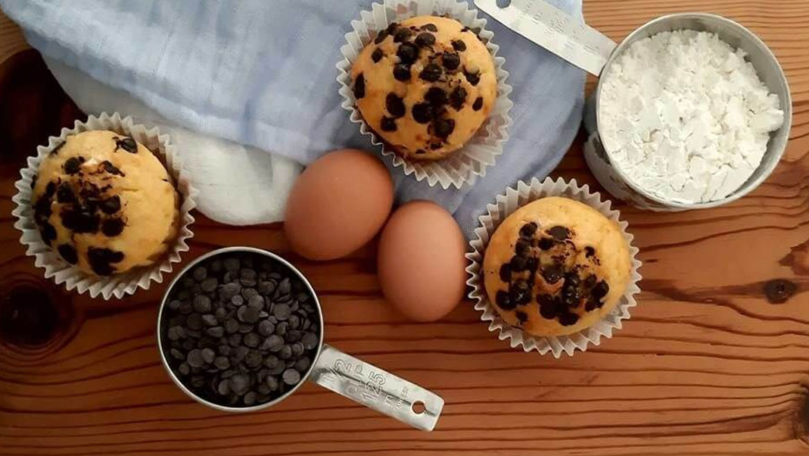 Περιχύνεις το μείγμα σου στις φόρμες μάφιν. Πρώτα, ρίχνεις τη μισή ποσότητα και στη συνέχεια μισή σταγόνα σοκολάτας και μετά το υπόλοιπο μάφιν.