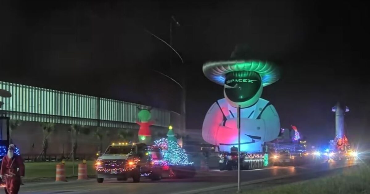 Μία ιδιαίτερη χριστουγεννιάτικη παρέλαση έγινε από την SpaceX, που συνηθίζει να κερδίζει τις εντυπώσεις με τη βάση στο Starbase του Τέξας να μετατρέπεται από διαστημικό κέντρο σε χριστουγεννιάτικο χωριό.