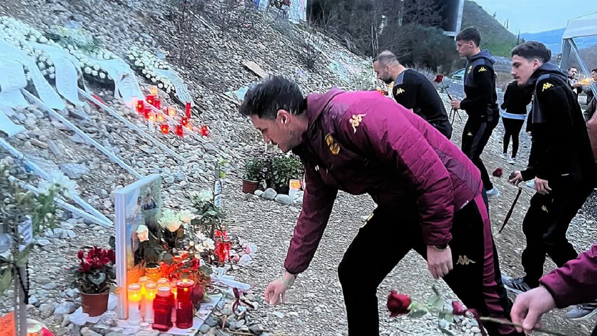 Οι «κιτρινόμαυροι», στη μετακίνησή τους το απόγευμα της Παρασκευής (28/2) από τη Θεσσαλονίκη για τον Βόλο, όπου το Σάββατο θα αντιμετωπίσουν για την 25η αγωνιστική της Super League την τοπική ομάδα, σταμάτησαν στο σημείο του τραγικού συμβάντος και άφησαν 57 τριαντάφυλλα για τις ψυχές που χάθηκαν προ διετίας εκεί.