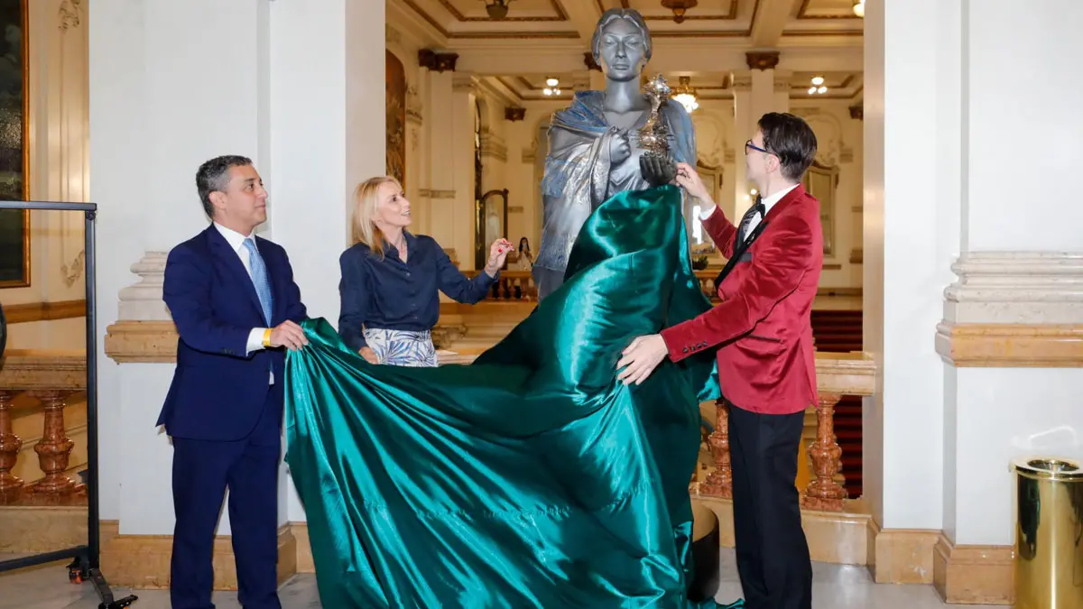 Το μνημειώδες γλυπτό, ύψους 2,5 μέτρων και βάρους περίπου 400 κιλών, δεσπόζει στον ιστορικό χώρο της όπερας, στον ίδιο τόπο όπου η Μαρία Κάλλας εμφανίστηκε το 1951, δημιουργώντας έναν ισχυρό συμβολισμό επιστροφής και αιωνιότητας.