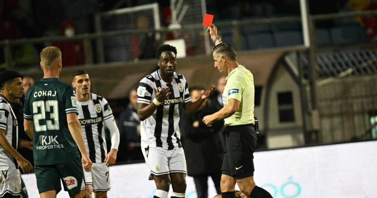 Η κόκκινη κάρτα στον Μεϊτέ (ΑΝΤΩΝΗΣ ΝΙΚΟΛΟΠΟΥΛΟΣ / EUROKINISSI)