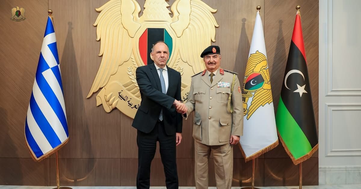 Στη Βεγγάζη μετέβη ο υπουργός Εξωτερικών, Γιώργος Γεραπετρίτης, ο οποίος το Σάββατο (28.03.2026) είχε συναντήσεις με τον επικεφαλής του Λιβυκού Εθνικού Στρατού, στρατάρχη Χαλίφα Χαφτάρ, τον αρχηγό του Γενικού Επιτελείου του Λιβυκού Εθνικού Στρατού, στρατηγό Χάλεντ Χαλίφα Χαφτάρ, καθώς και με τον πρόεδρο της Επιτροπής Εξωτερικών Υποθέσεων και Διεθνούς Συνεργασίας της Βουλής των Αντιπροσώπων και πρόεδρο της Επιτροπής Δεσμευμένων Περιουσιακών Στοιχείων της Λιβύης, Γιούσεφ Αλαγκούρι.