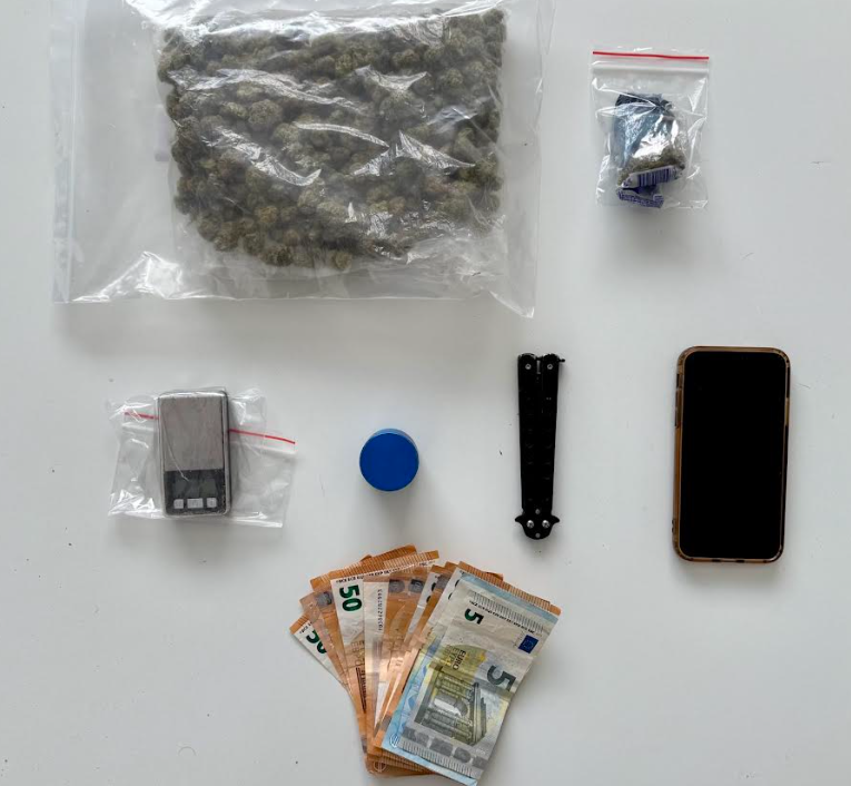 Κατασχέθηκαν ποσότητα κάνναβης, ζυγαριά ακριβείας, τρίφτης κάνναβης, χρήματα, κινητό τηλέφωνο και μαχαίρι