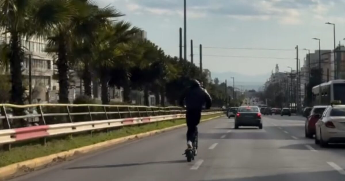 Αδιανόητο περιστατικό στη Συγγρού όπου ένας άνδρας οδηγούσε ανενόχλητος το ηλεκτρικό πατίνι του, στην αριστερή λωρίδα της λεωφόρου.