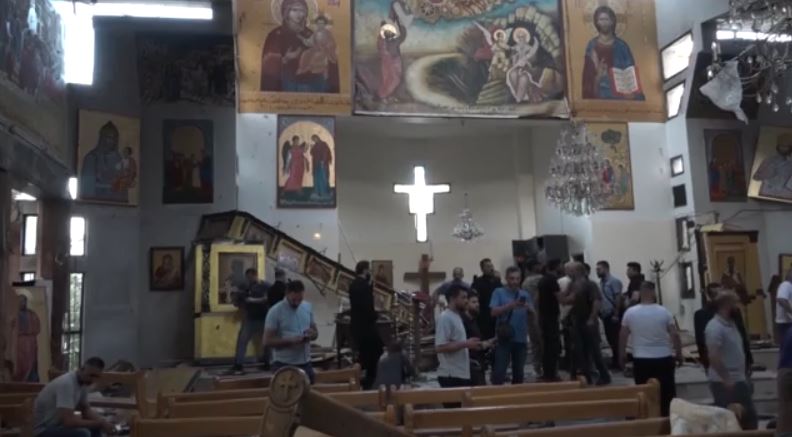 Αυτή είναι η εικόνα λίγα λεπτά μετά την τρομοκρατική επίθεση στον ελληνορθόδοξο ναό του Προφήτη Ηλία στη συνοικία Ντούελα της Δαμασκού.