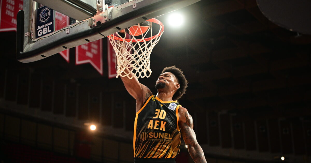 Ο σέντερ της ΑΕΚ πέτυχε 31 πόντους (!), με 1/2 τρίποντα, 9 ριμπάουντ και 3 ασίστ, ενώ κάρφωσε πολλάκις και με εμφατικό τρόπο στο καλάθι του Ολυμπιακού.