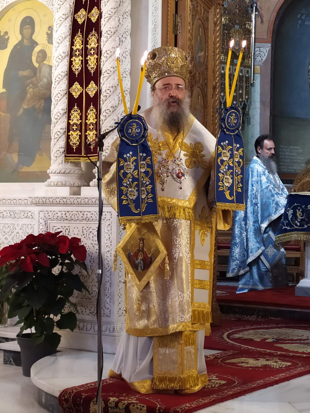 Ἐν συνεχείᾳ ὁ Σεβασμιώτατος ἀνεφέρθη στήν ὑπόθεση τῆς Ἑορτῆς τῶν Εἰσοδίων τῆς Θεοτόκου καί ἀνέλυσε τό κοντάκιον, ὃπου ἡ Θεοτόκος ὀνομάζεται Ναός καθαρώτατος τοῦ Σωτῆρος καί παστάς πολύτιμος καί θησαύρισμα τῆς δόξης τοῦ Θεοῦ.