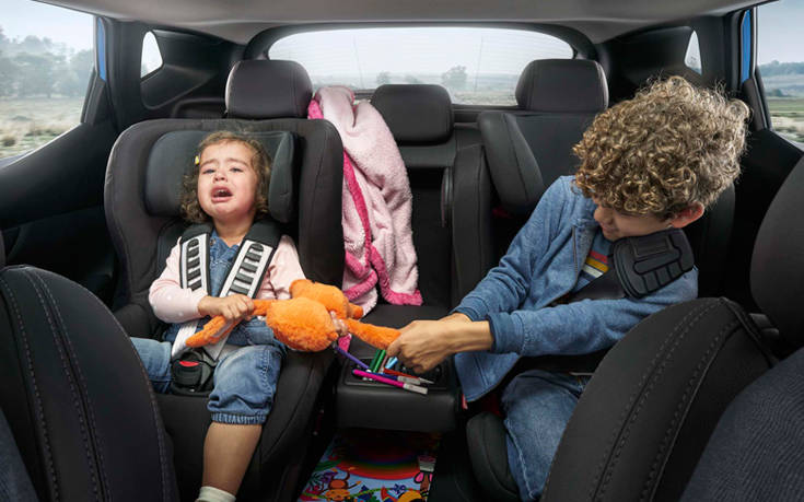 Τo κλάμα και οι στριγκλιές είναι στην κορυφή των δυσάρεστων καταστάσεων που δημιουργούν τα παιδιά στο αυτοκίνητο (65%), ακολουθούμενες από τους τσακωμούς μεταξύ αδελφών ή φίλων (58%), το χτύπημα της πλάτης του καθίσματος του οδηγού (49%), το βγάλσιμο των ζωνών ασφαλείας (43%) και την ρίψη παιχνιδιών μέσα στην καμπίνα του αυτοκινήτου (39%).