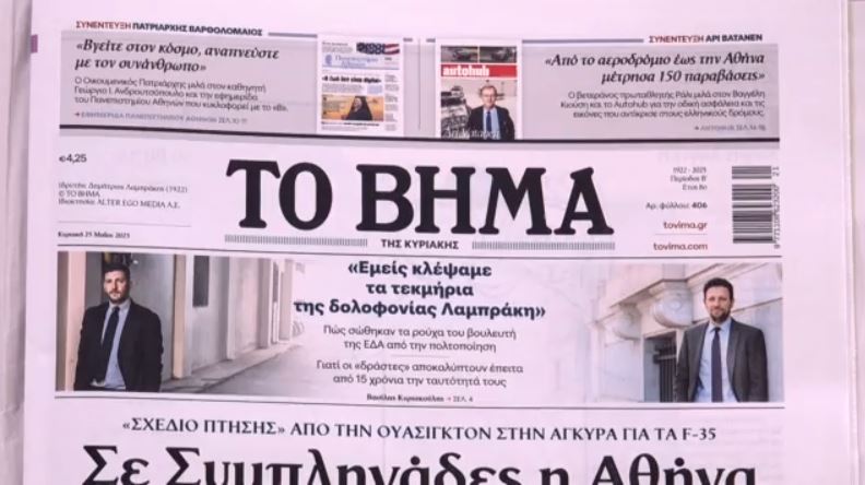 Αρχική ΕΛΛΑΔΑ Τα πρωτοσέλιδα των εφημερίδων σήμερα ΕΛΛΑΔΑ Τα πρωτοσέλιδα των εφημερίδων σήμερα Από Adieksodos - 25 Μαΐου 2025 Κοινοποίηση FacebookTwitterPinterestLinkedin Capture 252.jpg Τι γράφουν οι εφημερίδες σήμερα 25/05/2025. Πηγή ΠΑΡΟΜΟΙΑ ΑΡΘΡΑΠΕΡΙΣΣΟΤΕΡΑ ΑΠΟ ΤΟΝ ΔΗΜΙΟΥΡΓΟ Κακοκαιρία Byron: Βροχές μεγάλης έντασης και διάρκειας θα χτυπήσουν 8 περιοχές – Επικαιροποιήθηκε ξανά το έκτακτο δελτίο Η κακοκαιρία Byron σαρώνει και το Ηράκλειο: Ανεμοστρόβιλος χτύπησε τον Τσούτσουρο – Υπερχείλισε ρέμα Καιρός – Τσατραφύλλιας: Η κακοκαιρία δεν έχει τελειώσει – Τα 7 σημεία που παραμένουν στο επίκεντρο Αγροτικά μπλόκα: Νέες κινητοποιήσεις σε «Πράσινα Φανάρια» και κόμβο Δερβενίου – Πάνω από 6.000 τρακτέρ στους δρόμους Χίος: Δραματική διάσωση μητέρας και γιου μετά από φωτιά σε σπίτι – Συγκλονιστικό βίντεο Κακοκαιρία Byron: Από μία λωρίδα η κυκλοφορία στη νέα εθνική Αθηνών – Κορίνθου – Ποιοι δρόμοι έχουν κλείσει Προπονητής Μπράιτον για τον Στέφανο Τζίμα: «Θα μείνει εκτός για μήνες» 5 Δεκεμβρίου 2025 Μιχάλης Ιατρόπουλος: «Δεν έχω κανένα άγχος γιατί δεν ζω από το... 5 Δεκεμβρίου 2025 Δικαστήριο στη Γαλλία αποφασίζει το μέλλον της Shein – Η κυβέρνηση... 5 Δεκεμβρίου 2025 Αγορά ακινήτου με δάνειο: Οι τιμές διαμερισμάτων και οι μηνιαίες δόσεις... 5 Δεκεμβρίου 2025 Η Παυλοπούλου πέρασε στα ημιτελικά των 200μ. μεικτής του Ευρωπαϊκού πρωταθλήματος... 5 Δεκεμβρίου 2025 Σοφία Παυλίδου: «Είμαι σε σχέση. Είμαι ευτυχισμένη, ερωτευμένη» 5 Δεκεμβρίου 2025 Κακοκαιρία Byron: Βροχές μεγάλης έντασης και διάρκειας θα χτυπήσουν 8 περιοχές... 5 Δεκεμβρίου 2025 Μέγκαν Μαρκλ: Οι γιατροί ακρωτηρίασαν το πόδι του πατέρα της, κινδύνεψε... 5 Δεκεμβρίου 2025 Χαμός στην Τουρκία: Συνελήφθησαν παίκτες της Φενερμπαχτσέ και της Γαλατασαράι για... 5 Δεκεμβρίου 2025 Η κακοκαιρία Byron σαρώνει και το Ηράκλειο: Ανεμοστρόβιλος χτύπησε τον Τσούτσουρο... 5 Δεκεμβρίου 2025
