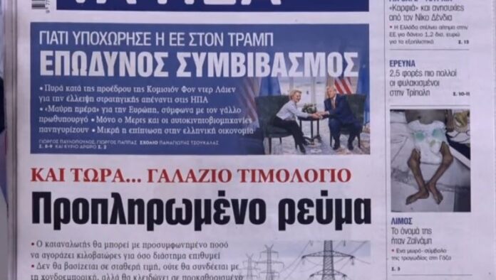 Αρχική ΕΛΛΑΔΑ Τα πρωτοσέλιδα των εφημερίδων σήμερα ΕΛΛΑΔΑ Τα πρωτοσέλιδα των εφημερίδων σήμερα Από Adieksodos - 29 Ιουλίου 2025 Κοινοποίηση FacebookTwitterPinterestLinkedin ε.jpg Τι γράφουν οι εφημερίδες σήμερα 29/07/2025. Πηγή ΠΑΡΟΜΟΙΑ ΑΡΘΡΑΠΕΡΙΣΣΟΤΕΡΑ ΑΠΟ ΤΟΝ ΔΗΜΙΟΥΡΓΟ Μπουρνάζι: Στο νοσοκομείο ανήλικος μετά από κατανάλωση αλκοόλ – Συνελήφθη ο υπεύθυνος του κλαμπ Χριστούγεννα: Ρετρό στολίδια και παιχνίδια στην καρδιά της Αθήνας – Γιορτινές, νοσταλγικές εικόνες Νεκρός ο 62χρονος Βασίλης που είχε εξαφανιστεί από τα Κρέστενα Ηλείας – Η ανακοίνωση από το «Χαμόγελο του Παιδιού» Οι αγρότες ενισχύουν τα μπλόκα μετά το «όχι» στην πρόσκληση Μητσοτάκη για συνάντηση Θεμιστοκλέους για τη δωρεά σπέρματος από Δανό με καρκινογόνο μετάλλαξη: «Μπορεί να υπάρχουν 12 οικογένειες από τον ίδιο δότη στην Ελλάδα» Οι αγρότες παραμένουν στα μπλόκα και έστειλαν τα αιτήματά τους στο Μαξίμου – «Να προσέλθετε σε διάλογο» τους ζητά ο Τσιάρας Μπουρνάζι: Στο νοσοκομείο ανήλικος μετά από κατανάλωση αλκοόλ – Συνελήφθη ο... 14 Δεκεμβρίου 2025 Άρης – Ολυμπιακός live για τη 14η αγωνιστική στη Super League 14 Δεκεμβρίου 2025 Διεθνείς οίκοι: «Ψηφίζουν» ελληνικά ομόλογα και το 2026 και «βλέπουν» νέες... 14 Δεκεμβρίου 2025 Φλωρίδης: Το πολιτικό σύστημα μεταφέρει τις αδυναμίες τους στη Δικαιοσύνη, προκαλώντας... 14 Δεκεμβρίου 2025 Ραφαήλ Παγώνης: «Είδα όνειρο ότι με κάλεσαν να παίξω τένις με... 14 Δεκεμβρίου 2025 Ευγενία Σαμαρά για το ενδεχόμενο δημιουργίας οικογένειας: «Πλέον λέω "άκου τη... 14 Δεκεμβρίου 2025 Χριστουγεννιάτικες διακοπές με κατοικίδια: Πρακτικός οδηγός για κάθε προορισμό 14 Δεκεμβρίου 2025 Χριστούγεννα: Ρετρό στολίδια και παιχνίδια στην καρδιά της Αθήνας – Γιορτινές,... 14 Δεκεμβρίου 2025 Χρυσοχοΐδης για την Αστυνομία στις αγροτικές κινητοποιήσεις: Δεν διαθέτει πλαστικές σφαίρες... 14 Δεκεμβρίου 2025 Σίδνεϊ: Ένας Ισραηλινός ανάμεσα στους 12 νεκρούς του αιματοκυλίσματος – «Είχαμε... 14 Δεκεμβρίου 2025