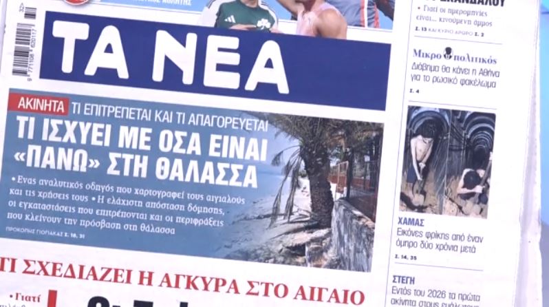 Αρχική ΕΛΛΑΔΑ Τα πρωτοσέλιδα των εφημερίδων σήμερα ΕΛΛΑΔΑ Τα πρωτοσέλιδα των εφημερίδων σήμερα Από Adieksodos - 4 Αυγούστου 2025 Κοινοποίηση FacebookTwitterPinterestLinkedin Capture 6.jpg Τι γράφουν οι εφημερίδες σήμερα 04/08/2025. Πηγή ΠΑΡΟΜΟΙΑ ΑΡΘΡΑΠΕΡΙΣΣΟΤΕΡΑ ΑΠΟ ΤΟΝ ΔΗΜΙΟΥΡΓΟ Η κακοκαιρία Byron «έπνιξε» Μάνδρα, Μέγαρα και Νέα Πέραμο – Βίντεο με τους ορμητικούς χειμάρρους Καιρός: Σφοδρές καταιγίδες από την κακοκαιρία Byron – Οι 10 περιοχές που βρίσκονται στο επίκεντρο Κακοκαιρία Byron: Πλημμύρες στη Μάνδρα, έκλεισε η Εθνική Αθηνών – Κορίνθου στα διόδια Ελευσίνας – Δρόμοι ποτάμια και μπαράζ 112 Καιρός αύριο: Η κακοκαιρία Byron φέρνει βροχές, καταιγίδες και ισχυρούς ανέμους – Έντονα φαινόμενα σε Αττική και Θεσσαλονίκη Σπύρος Μαρτίκας: Φίλος του τον διαψεύδει για την συμμορία των καζίνο – «Δεν γνωρίζω τα μέλη του κυκλώματος, του δάνεισα 200.000 ευρώ ως δάνειο» Κακοκαιρία Byron: Νόμιμη η απουσία των δημοσίων υπαλλήλων που δεν θα μπορούν να προσέλθουν την Παρασκευή Η κακοκαιρία Byron «έπνιξε» Μάνδρα, Μέγαρα και Νέα Πέραμο – Βίντεο... 5 Δεκεμβρίου 2025 Ουκρανός δημοσιογράφος στρίμωξε την «κρυφή» κόρη του Πούτιν στο Παρίσι: «Πάρε... 5 Δεκεμβρίου 2025 Η Klavdia τραγούδησε την «Αστερομάτα» στην τελετή παράδοσης της Φλόγας στο... 5 Δεκεμβρίου 2025 Τι λένε τα ζώδια για σήμερα Παρασκευή 5 Δεκεμβρίου 2025 5 Δεκεμβρίου 2025 Τα 4 ζώδια που θα έχουν τον καλύτερο Δεκέμβριο 5 Δεκεμβρίου 2025 Εφορία: Πόσοι φορολογούμενοι απειλούνται με κατασχέσεις – Πώς μπορούν να ρυθμισθούν... 5 Δεκεμβρίου 2025 Μεντιλίμπαρ: Ο τίτλος του πρωταθλητή χειμώνα δεν σημαίνει τίποτα 5 Δεκεμβρίου 2025 Καιρός: Σφοδρές καταιγίδες από την κακοκαιρία Byron – Οι 10 περιοχές... 5 Δεκεμβρίου 2025 Θρίλερ με τον θάνατο της «Ανθρώπινης Barbie»: Η οικογένεια μιλάει για... 5 Δεκεμβρίου 2025 O Χρήστος Μουζακίτης στα ραντάρ της Γιουβέντους και της Ντόρτμουντ 5 Δεκεμβρίου 2025
