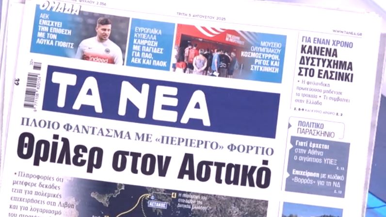 Αρχική ΕΛΛΑΔΑ Τα πρωτοσέλιδα των εφημερίδων σήμερα ΕΛΛΑΔΑ Τα πρωτοσέλιδα των εφημερίδων σήμερα Από Adieksodos - 5 Αυγούστου 2025 Κοινοποίηση FacebookTwitterPinterestLinkedin 11 1.jpg Τι γράφουν οι εφημερίδες σήμερα 05/08/2025. Πηγή ΠΑΡΟΜΟΙΑ ΑΡΘΡΑΠΕΡΙΣΣΟΤΕΡΑ ΑΠΟ ΤΟΝ ΔΗΜΙΟΥΡΓΟ Η κακοκαιρία Byron «έπνιξε» Μάνδρα, Μέγαρα και Νέα Πέραμο – Βίντεο με τους ορμητικούς χειμάρρους Καιρός: Σφοδρές καταιγίδες από την κακοκαιρία Byron – Οι 10 περιοχές που βρίσκονται στο επίκεντρο Κακοκαιρία Byron: Πλημμύρες στη Μάνδρα, έκλεισε η Εθνική Αθηνών – Κορίνθου στα διόδια Ελευσίνας – Δρόμοι ποτάμια και μπαράζ 112 Καιρός αύριο: Η κακοκαιρία Byron φέρνει βροχές, καταιγίδες και ισχυρούς ανέμους – Έντονα φαινόμενα σε Αττική και Θεσσαλονίκη Σπύρος Μαρτίκας: Φίλος του τον διαψεύδει για την συμμορία των καζίνο – «Δεν γνωρίζω τα μέλη του κυκλώματος, του δάνεισα 200.000 ευρώ ως δάνειο» Κακοκαιρία Byron: Νόμιμη η απουσία των δημοσίων υπαλλήλων που δεν θα μπορούν να προσέλθουν την Παρασκευή Η κακοκαιρία Byron «έπνιξε» Μάνδρα, Μέγαρα και Νέα Πέραμο – Βίντεο... 5 Δεκεμβρίου 2025 Ουκρανός δημοσιογράφος στρίμωξε την «κρυφή» κόρη του Πούτιν στο Παρίσι: «Πάρε... 5 Δεκεμβρίου 2025 Η Klavdia τραγούδησε την «Αστερομάτα» στην τελετή παράδοσης της Φλόγας στο... 5 Δεκεμβρίου 2025 Τι λένε τα ζώδια για σήμερα Παρασκευή 5 Δεκεμβρίου 2025 5 Δεκεμβρίου 2025 Τα 4 ζώδια που θα έχουν τον καλύτερο Δεκέμβριο 5 Δεκεμβρίου 2025 Εφορία: Πόσοι φορολογούμενοι απειλούνται με κατασχέσεις – Πώς μπορούν να ρυθμισθούν... 5 Δεκεμβρίου 2025 Μεντιλίμπαρ: Ο τίτλος του πρωταθλητή χειμώνα δεν σημαίνει τίποτα 5 Δεκεμβρίου 2025 Καιρός: Σφοδρές καταιγίδες από την κακοκαιρία Byron – Οι 10 περιοχές... 5 Δεκεμβρίου 2025 Θρίλερ με τον θάνατο της «Ανθρώπινης Barbie»: Η οικογένεια μιλάει για... 5 Δεκεμβρίου 2025 O Χρήστος Μουζακίτης στα ραντάρ της Γιουβέντους και της Ντόρτμουντ 5 Δεκεμβρίου 2025