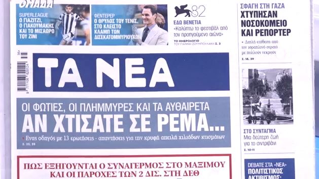 Αρχική ΕΛΛΑΔΑ Τα πρωτοσέλιδα των εφημερίδων σήμερα ΕΛΛΑΔΑ Τα πρωτοσέλιδα των εφημερίδων σήμερα Από Adieksodos - 26 Αυγούστου 2025 Κοινοποίηση FacebookTwitterPinterestLinkedin Capture 59.jpg Τι γράφουν οι εφημερίδες σήμερα 26/08/2025. Πηγή ΠΑΡΟΜΟΙΑ ΑΡΘΡΑΠΕΡΙΣΣΟΤΕΡΑ ΑΠΟ ΤΟΝ ΔΗΜΙΟΥΡΓΟ Κακοκαιρία Byron: Δρόμος εξαφανίστηκε στη Νέα Πέραμο – Συγκλονιστικές εικόνες Βουλιαγμένη: Μαντρότοιχος κατέρρευσε και καταπλάκωσε παρκαρισμένο αυτοκίνητο ΕΦΕΤ: Ανακαλείται το φιλέτο γαύρου σε ηλιέλαιο «Capri»: «Βρέθηκε βιοτοξίνη πάνω από το επιτρεπτό όριο» Η efood υποσχέθηκε bonus σε όσους κάνουν delivery εν μέσω της σφοδρής καταιγίδας – Μετά τον σάλο σταμάτησε τη διανομή Ο ΕΦΕΤ ανακαλεί τα σοκολατάκια «Kinder Μιx 3D pop-up»: «Δεν είναι εμφανείς οι αλλεργιόνες ουσίες» Θεσσαλονίκη: «Γκρεμίστηκε» το χριστουγεννιάτικο δέντρο μπροστά στο δημαρχείο λόγω ισχυρών ανέμων από την κακοκαιρία Byron Κυριάκος Μητσοτάκης: Θα έχουμε Ανώτατο Συμβούλιο Συνεργασίας με την Τουρκία στο... 5 Δεκεμβρίου 2025 Politico: Πώς η Ρωσία καταφέρνει να αντικαθιστά συνεχώς τους νεκρούς και... 5 Δεκεμβρίου 2025 Κακοκαιρία Byron: Δρόμος εξαφανίστηκε στη Νέα Πέραμο – Συγκλονιστικές εικόνες 5 Δεκεμβρίου 2025 Φενέρμπαχτσε: «Ο αγώνας του Παναθηναϊκού είναι απόψε, αν γίνει, δεν ήταν... 5 Δεκεμβρίου 2025 Κόνι Μεταξά – Τάσος Ξιαρχό: «Κάποιοι κρύβουν την πραγματικότητα για να... 5 Δεκεμβρίου 2025 Έφηβος στη Βρετανία για την εξάρτησή του από την κεταμίνη: «Ξεκίνησα... 5 Δεκεμβρίου 2025 Κώτσηρας: Προωθείται η θέσπιση προκαταρκτικών φορολογικών αποφάσεων για ενίσχυση της ασφάλειας... 5 Δεκεμβρίου 2025 ΚΑΕ Παναθηναϊκός: «Αποκλειστήκαμε από τα κονδύλια της ενεργειακής αναβάθμισης πριν παραχωρηθεί... 5 Δεκεμβρίου 2025 Αλέξανδρος Κοψιάλης: Τα 120 κιλά, ο φόβος για την υγεία του... 5 Δεκεμβρίου 2025 Απόλυτο inspiration: Το edgy eyeliner της Kristen Stewart για την επόμενη... 5 Δεκεμβρίου 2025