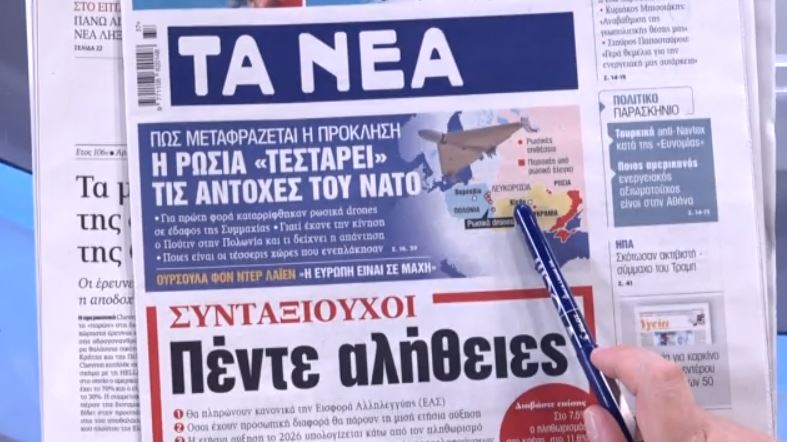 Αρχική ΕΛΛΑΔΑ Τα πρωτοσέλιδα των εφημερίδων σήμερα ΕΛΛΑΔΑ Τα πρωτοσέλιδα των εφημερίδων σήμερα Από Adieksodos - 11 Σεπτεμβρίου 2025 Κοινοποίηση FacebookTwitterPinterestLinkedin Capture 95.jpg Τι γράφουν οι εφημερίδες σήμερα 11/09/2025. Πηγή ΠΑΡΟΜΟΙΑ ΑΡΘΡΑΠΕΡΙΣΣΟΤΕΡΑ ΑΠΟ ΤΟΝ ΔΗΜΙΟΥΡΓΟ Κακοκαιρία Byron: Δρόμος εξαφανίστηκε στη Νέα Πέραμο – Συγκλονιστικές εικόνες Βουλιαγμένη: Μαντρότοιχος κατέρρευσε και καταπλάκωσε παρκαρισμένο αυτοκίνητο ΕΦΕΤ: Ανακαλείται το φιλέτο γαύρου σε ηλιέλαιο «Capri»: «Βρέθηκε βιοτοξίνη πάνω από το επιτρεπτό όριο» Η efood υποσχέθηκε bonus σε όσους κάνουν delivery εν μέσω της σφοδρής καταιγίδας – Μετά τον σάλο σταμάτησε τη διανομή Ο ΕΦΕΤ ανακαλεί τα σοκολατάκια «Kinder Μιx 3D pop-up»: «Δεν είναι εμφανείς οι αλλεργιόνες ουσίες» Θεσσαλονίκη: «Γκρεμίστηκε» το χριστουγεννιάτικο δέντρο μπροστά στο δημαρχείο λόγω ισχυρών ανέμων από την κακοκαιρία Byron Κυριάκος Μητσοτάκης: Θα έχουμε Ανώτατο Συμβούλιο Συνεργασίας με την Τουρκία στο... 5 Δεκεμβρίου 2025 Politico: Πώς η Ρωσία καταφέρνει να αντικαθιστά συνεχώς τους νεκρούς και... 5 Δεκεμβρίου 2025 Κακοκαιρία Byron: Δρόμος εξαφανίστηκε στη Νέα Πέραμο – Συγκλονιστικές εικόνες 5 Δεκεμβρίου 2025 Φενέρμπαχτσε: «Ο αγώνας του Παναθηναϊκού είναι απόψε, αν γίνει, δεν ήταν... 5 Δεκεμβρίου 2025 Κόνι Μεταξά – Τάσος Ξιαρχό: «Κάποιοι κρύβουν την πραγματικότητα για να... 5 Δεκεμβρίου 2025 Έφηβος στη Βρετανία για την εξάρτησή του από την κεταμίνη: «Ξεκίνησα... 5 Δεκεμβρίου 2025 Κώτσηρας: Προωθείται η θέσπιση προκαταρκτικών φορολογικών αποφάσεων για ενίσχυση της ασφάλειας... 5 Δεκεμβρίου 2025 ΚΑΕ Παναθηναϊκός: «Αποκλειστήκαμε από τα κονδύλια της ενεργειακής αναβάθμισης πριν παραχωρηθεί... 5 Δεκεμβρίου 2025 Αλέξανδρος Κοψιάλης: Τα 120 κιλά, ο φόβος για την υγεία του... 5 Δεκεμβρίου 2025 Απόλυτο inspiration: Το edgy eyeliner της Kristen Stewart για την επόμενη... 5 Δεκεμβρίου 2025