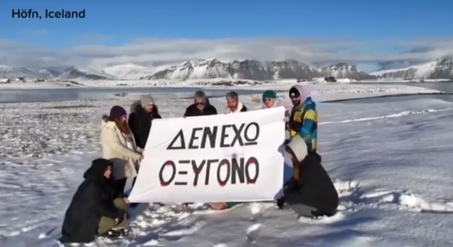 Από την Ισλανδία Έλληνες έστειλαν το δικό τους μήνυμα κρατώντας ένα πανί με το σύνθημα «δεν έχω οξυγόνο».