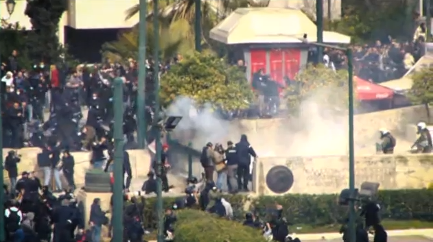 Όταν οι ομάδες των κουκουλοφόρων διαλύθηκαν, ΜΑΤ μαζί με «Αύρες» επιτέθηκαν σε διαδηλωτές που βρίσκονταν μπροστά από τη Βουλή και τους διέλυσαν.