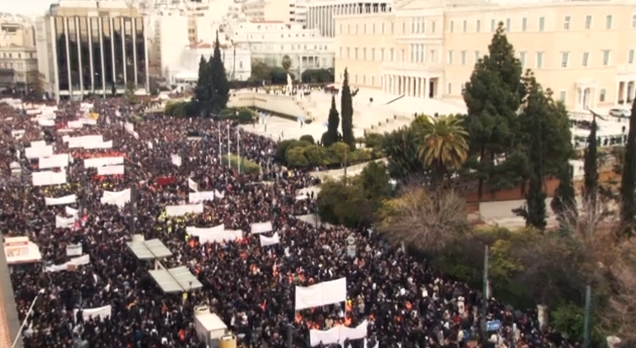 Στο κέντρο της Αθήνας, μία λαοθάλασσα κόσμου, σε ένα μεγαλειώδες, ανεπανάληπτο συλλαλητήριο.