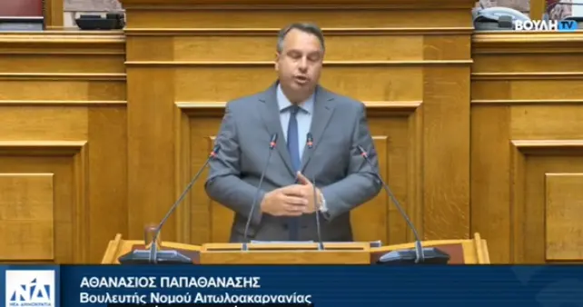 Ομιλία του Βουλευτή Αιτωλοακαρνανίας Θανάση Παπαθανάση στη Βουλή των Ελλήνων