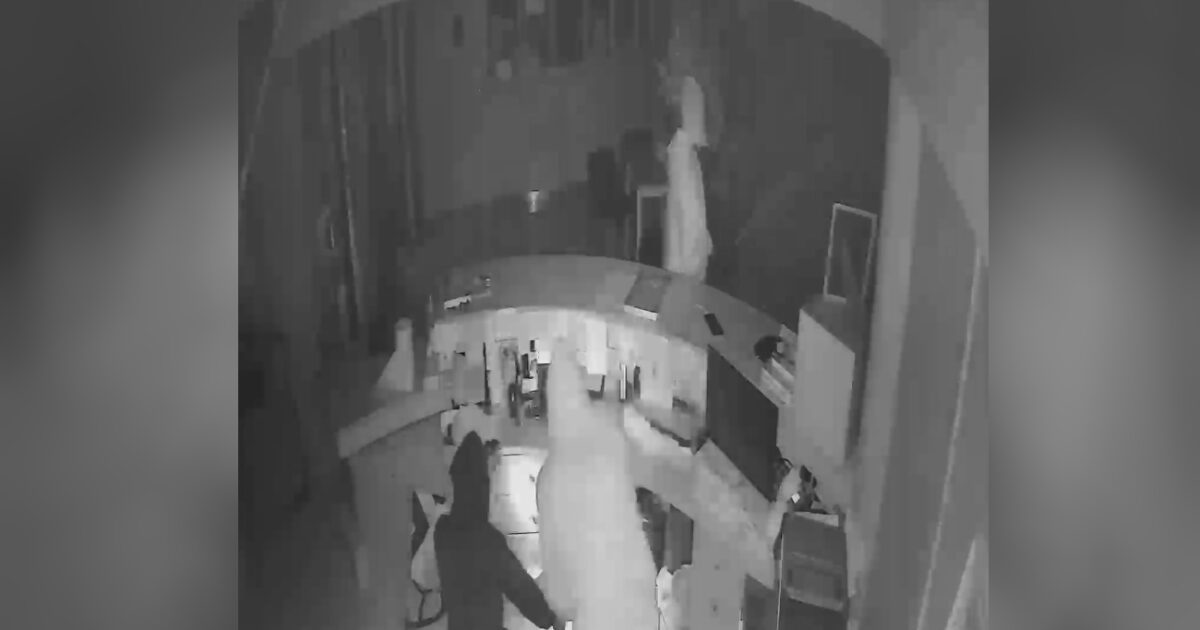 Σε άλλα πλάνα φαίνονται με τη χρήση εργαλείων να ανοίγουν πόρτα λες και είναι ξεκλείδωτη. Μέσα σε δευτερόλεπτα έχουν εισβάλει στην εταιρεία και ξεκινούν να ψάχνουν με προσοχή την λεία τους.
