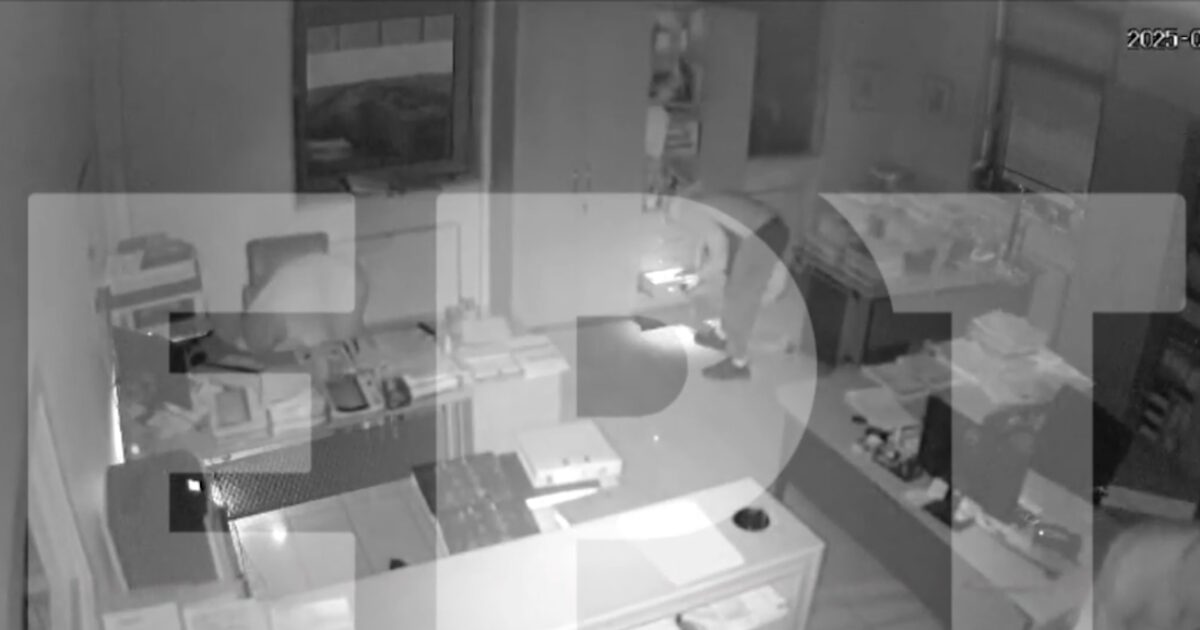 Όπως φαίνεται στο βίντεο, τα μέλη της σπείρας διαρρηκτών αποχωρούν με την ησυχία τους από τις εγκαταστάσεις εταιρείας που λίγο πριν είχαν ληστέψει.
