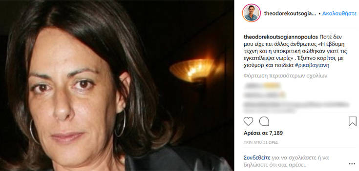 Χρήστος Φερεντίνος: «Γλυκειά, αφασία, ανατρεπτική, μέσα σ όλα ,πανέξυπνη, μορφωμένη, κουκλαρα, αστεία, πειραχτήρι ,έξω καρδιά ….είδος συλλεκτικό το Ρικακι μας Θα μας λείψει»