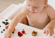 Το ιδανικό είναι να κάνετε μπάνιο το μωρό σας με χλιαρό προς ζεστό νερό και όχι για πολλή ώρα. Αν θέλει να παίξει με το νερό, αφήστε το να το κάνει πριν χρησιμοποιήσετε το όποιο προϊόν καθαρισμού, μιας και αν παίξει στο τέλος του μπάνιου, η παρατεταμένη έκθεσή του στη σαπουνάδα θα προκαλέσει ξηροδερμία. Σημαντική επίσης είναι και η επιλογή κατάλληλου βρεφικού αφρόλουτρου, να περιέχει δηλαδή καταπραϋντικές ουσίες που σέβονται το pH του δέρματός του.