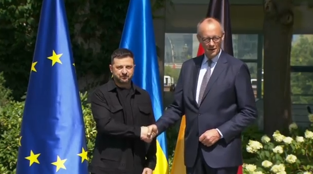 Ο θερμός εναγκαλισμός του Φρίντριχ Μερτς με τον Βολοντίμιρ Ζελένσκι δείχνει τη στήριξη της Γερμανίας προς την Ουκρανία.