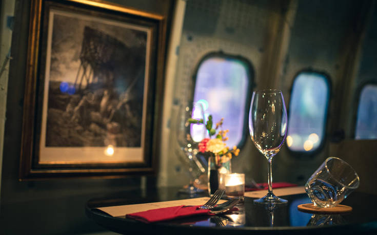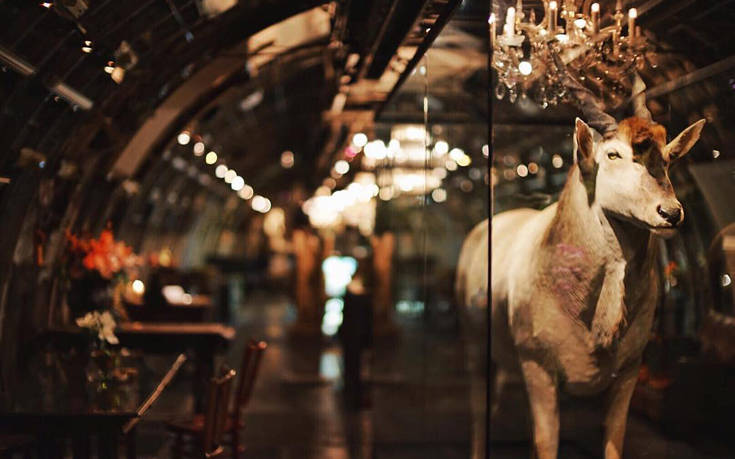 Ένα ασανσέρ μεταφέρει τους επισκέπτες από το επίπεδο της γης στο χώρο της κύριας τραπεζαρίας, όπου φιγούρες από ζώα και vintage βικτωριανού τύπου διακοσμητικά στοιχεία, προσθέτουν μια άκρως σουρεάλ αίσθηση παρακμής στο ήδη καινοτόμο concept του.