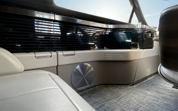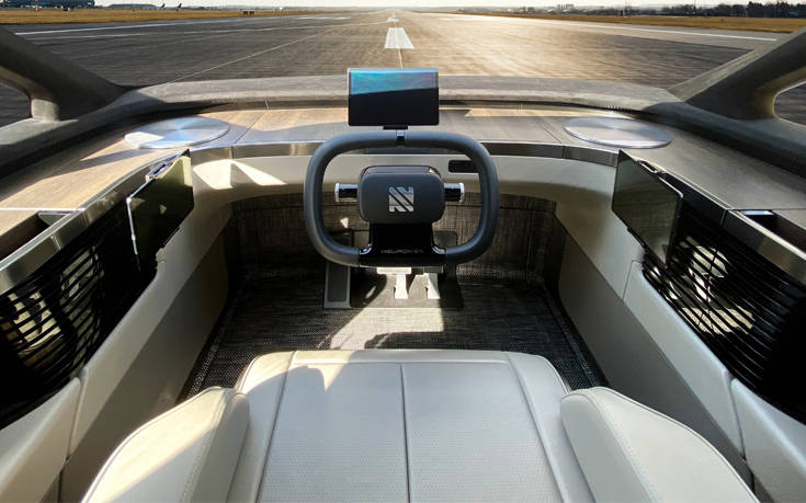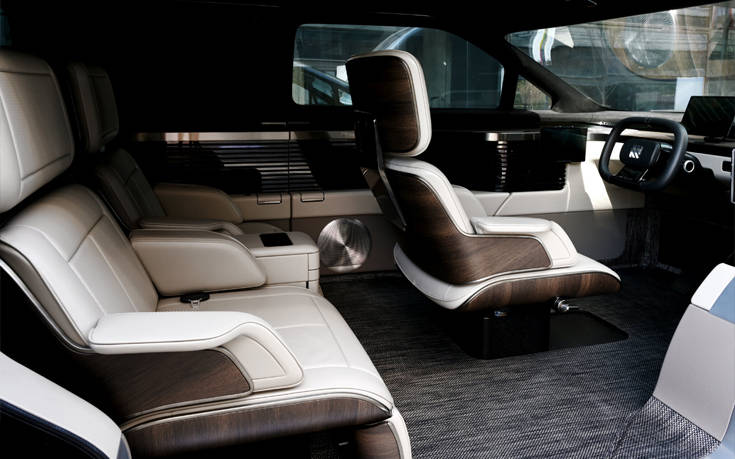 Εσωτερικά, θυμίζει τη γέφυρα διαστημόπλοιου, με το βιδωμένο στο κέντρο κάθισμα του οδηγού και τις οθόνες αφής να κάνουν τα υπόλοιπα.