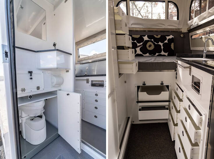 Όλα είναι εδώ ανώτερης κατασκευής και συναρμολογούνται στη μονάδα του Όρεγκον με υλικά που προέρχονται από τη ναυπηγική. Τόσο το Dual Cab FX όσο και το EXP προσφέρουν χώρο 8 τετραγωνικών μέτρων.