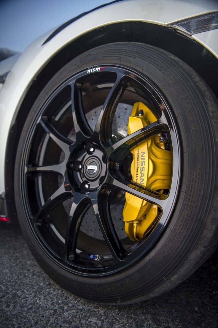 Η Nissan συνεργάστηκε με τον Ιταλό κατασκευαστή φρένων Brembo για να δημιουργήσει ένα ολοκαίνουργιο πακέτο φρένων για το GT-R Nismo 2020. Οι ειδικές μεγάλες δαγκάνες συνοδεύονται από μεγάλους κεραμικούς ρότορες, τους μεγαλύτερους που έχουν τοποθετηθεί ποτέ σε Ιαπωνικό αυτοκίνητο, διάστασης 410 χλστ (16,1 ίντσων) εμπρός και 390 χλστ (15,3 ίντσων) πίσω.