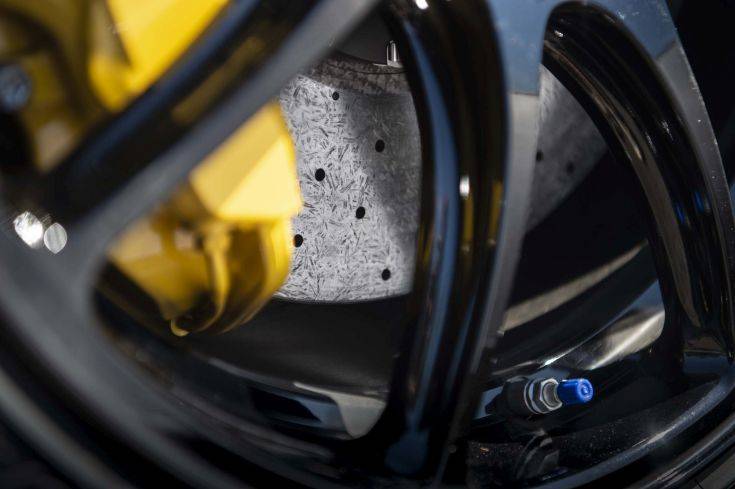 Παράλληλα, η ψύξη του κάθε εμπρόσθιου ρότορα βελτιώθηκε με τη μεταβολή της γωνίας στην οποία είναι τοποθετημένοι οι αεραγωγοί, βοηθώντας έτσι να διοχετευτεί υψηλότερη ροή αέρα προς τα κέντρα τους. Ως τελευταία “πινελιά”, οι δαγκάνες έχουν “βυθιστεί” σε ένα πυράντοχο κίτρινο χρώμα, που όχι μόνο μπορεί να αντέξει θερμοκρασίες πάνω από 1.000 βαθμούς Κελσίου, αλλά είναι ανθεκτικό σε αποχρωματισμό από σκληρή χρήση και επαναλαμβανόμενες διαδρομές με απότομες μεταβολές θερμοκρασιών.