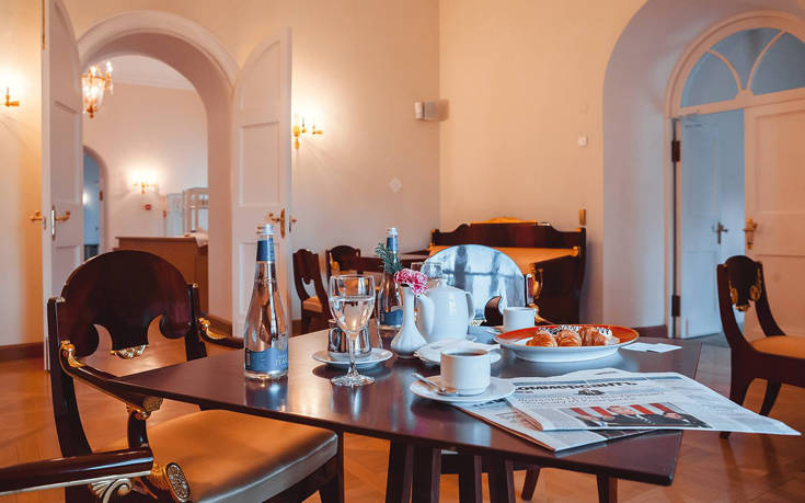 Ένα αριστοτεχνικό πάντρεμα της ιστορικής μεγαλοπρέπειας που συνοδεύει την ιστορία του χώρου και της σύγχρονης άνεσης χαρακτηρίζει όλους τους χώρους του, οι οποίοι διακοσμητικά ακολουθούν το αυτοκρατορικό στυλ.![]()