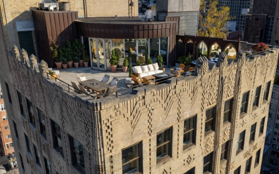 Η ιδιωτική ταράτσα δεν είναι απλώς ένας εξωτερικός χώρος. Είναι ένα μικρό καταφύγιο πάνω από την πόλη, με indoor-outdoor χώρο και τζάκι, κάτι εξαιρετικά σπάνιο για τη Νέα Υόρκη.