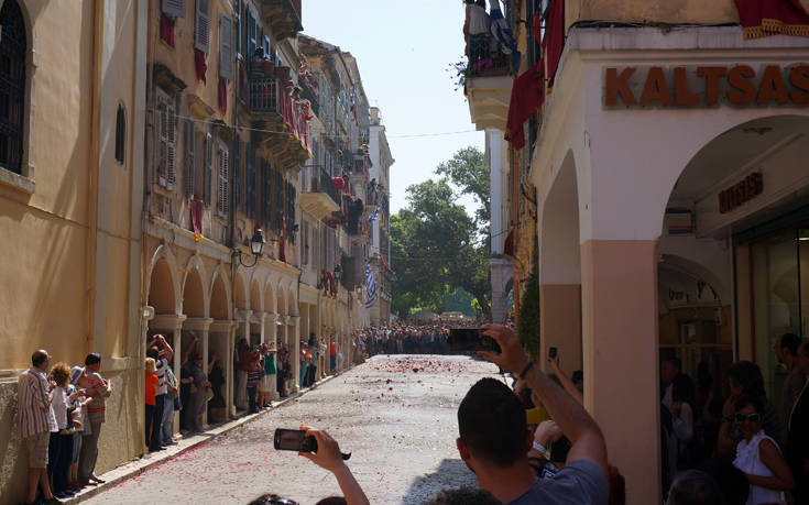 Οι εκδηλώσεις στον κερκυραϊκό εορτασμό του Πάσχα ξεκινούν από την Κυριακή των Βαΐων, με τη λιτάνευση του Σκηνώματος του Αγίου Σπυρίδωνα –πολιούχου αγίου της Κέρκυρας– μια τελετή που ακολουθείται από το 1630.