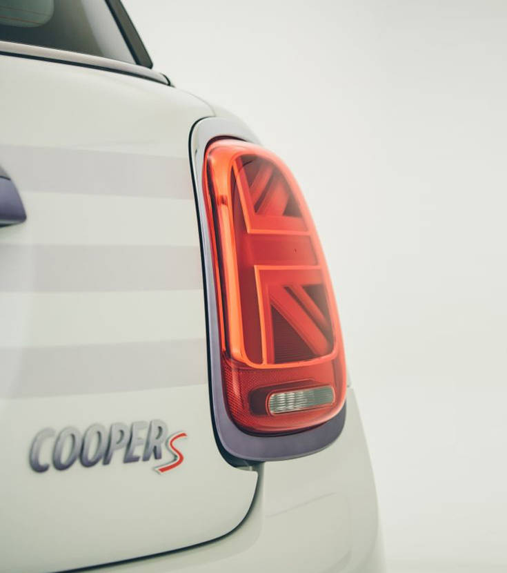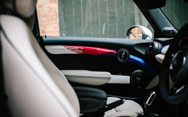 Μία σειρά από λεπτομέρειες ειδικά αφιερωμένες στους νεονύμφους επιβεβαιώνουν ότι το συγκεκριμένο Mini είναι γνήσιο «one-off». Το γραφικό οροφής για παράδειγμα συνδυάζει στοιχεία της Βρετανικής και Αμερικανικής εθνικής σημαίας. Επίσης, ανοίγοντας τις πόρτες οδηγού και συνοδηγού, ένα αποκλειστικό μήνυμα υποδοχής προβάλλεται στο έδαφος.