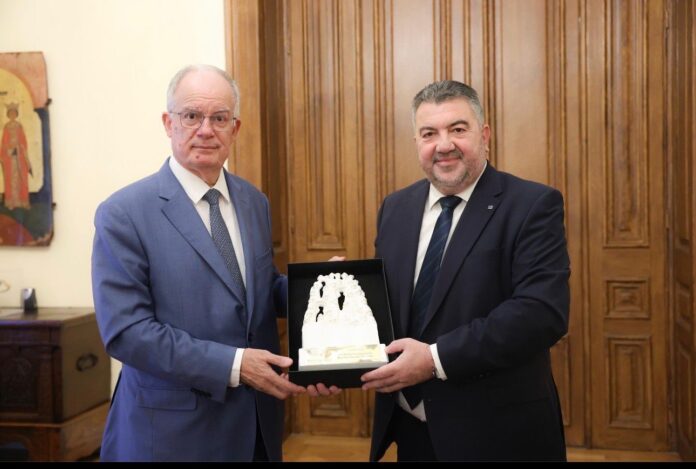 Η Διοικητική Επιτροπή του Βιοτεχνικού Επιμελητηρίου Αθήνας (ΒΕΑ), με επικεφαλής τον Πρόεδρο κ. Κωνσταντίνο Δαμίγο, επισκέφθηκε σήμερα τον Πρόεδρο της Ελληνικής Δημοκρατίας Κωνσταντίνο Τασούλα, παρουσιάζοντας υπόμνημα με τις βασικές θέσεις και προτάσεις του Επιμελητηρίου, για την ανασυγκρότηση της βιοτεχνίας και της ελληνικής παραγωγικής βάσης.