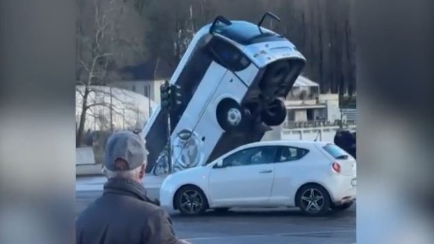 Βίντεο καταγράφει την στιγμή που το βαρύ όχημα, άγνωστο γιατί, πέφτει από γέφυρα στον Πάδο ποταμό.