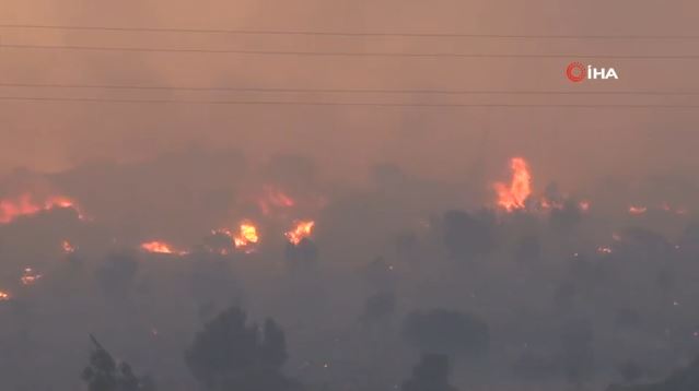 Οι φλόγες εξαπλώνονται αστραπιαία, βάφοντας πορτοκαλί τον ουρανό στη βορειοδυτική Τουρκία.