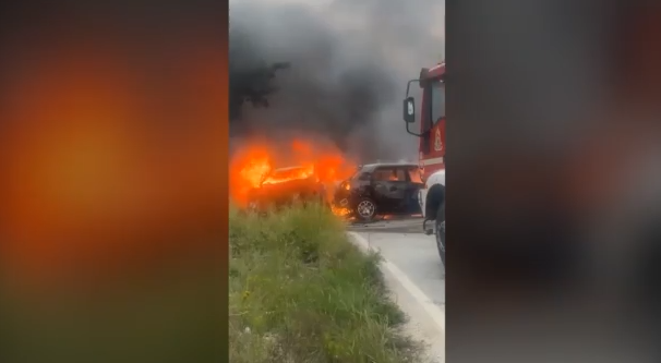 Δύο αυτοκίνητα συγκρούστηκαν μετωπικά, με αποτέλεσμα το ένα να πάρει αμέσως φωτιά. Όταν έφτασε στο σημείο η Πυροσβεστική απεγκλώβισε από το ένα όχημα τον οδηγό απανθρακωμένο.