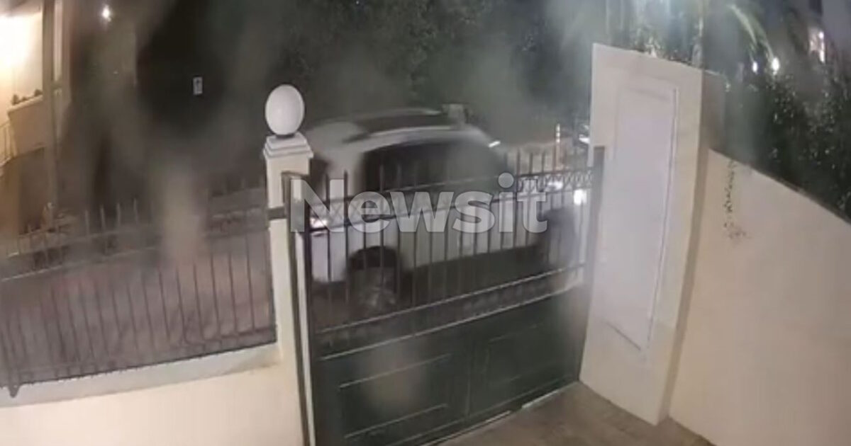 Η στιγμή που το λευκό βαν στο οποίο επέβαιναν οι δράστες της διάρρηξης σε πολυκατοικία στην οδό Σίφνου στη Βάρη το βράδυ της Μεγάλης Παρασκευής (10.4.26).