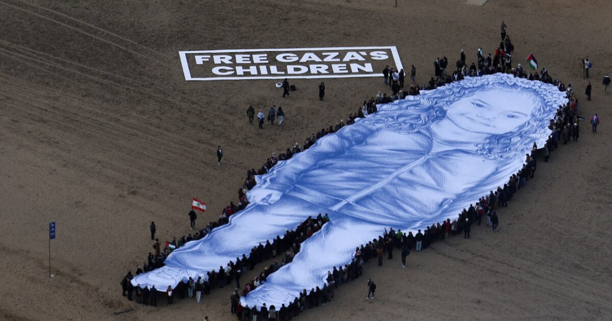 Διαδηλωτές ξεδίπλωσαν ένα τεράστιο πορτρέτο της 5χρονης Παλαιστίνιας Χιντ Ρατζάμπ σε μια παραλία στη Βαρκελώνη, δύο χρόνια μετά τον θάνατό της στον πόλεμο στη Γάζα.