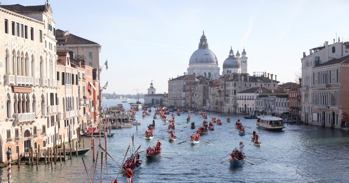 Church bells ring out across Venice, Italy as the “”Regata dei Babbi Natale” brings joy to the canals—video reposted from the lens of American artist Rachel Lee Hovnanian.https://t.co/WUVmDM3xOy#christmasinvenice #kayhanlife pic.twitter.com/OnNc04fXB8