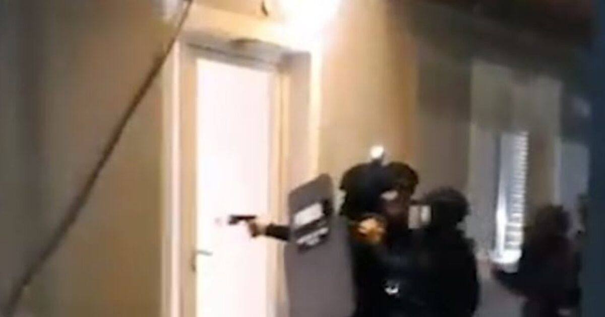 Στο βίντεο φαίνονται πάνοπλοι αστυνομικοί να μπαίνουν αιφνιδιαστικά σε σπίτι κατά τη διάρκεια της μεγάλης επιχείρησης που πραγματοποιήθηκε σε Αττική, Κόρινθο αλλά και σε φυλακές με στόχο την εξάρθρωση του κυκλώματος απατεώνων με την τεράστια λεία.