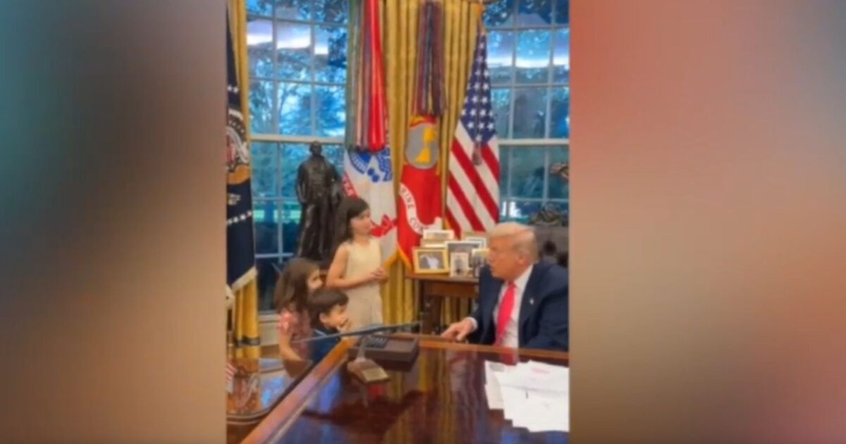 Ο πρόεδρος Τραμπ δέχθηκε μικρά παιδιά στο Οβάλ Γραφείο και μάλιστα συστήθηκε σε ένα από αυτά. «Με λένε Ντόναλντ» του είπε και το παιδάκι ξέσπασε σε γέλια. Το στιγμιότυπο έγινε φυσικά viral. Το βίντεο ανέβασε η Μargo Martin, σύμβουλος επικοινωνίας του Τραμπ.
