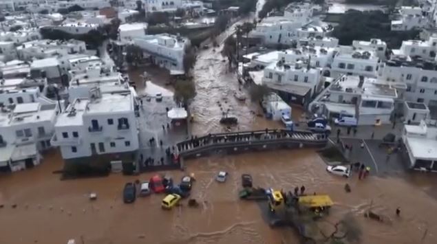 Στη Νάουσα με τα ορμητικά νερά να παρασύρουν από τραπεζοκαθίσματα καταστημάτων μέχρι αυτοκίνητα, στην Μύκονο τα ορμητικά νερά κάνουν μετά από λίγα λεπτά βροχής, απροσπέλαστα τα γραφικά σοκάκια της Χώρας.