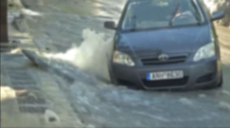 Όπως φαίνεται από τα πλάνα του MEGA, έχει σπάσει αγωγός νερού από το μεσημέρι όπως λένε οι κάτοικοι και κανείς δεν είχε μεριμνήσει.