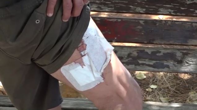 «Ένιωθα ένα δυνατό τράβηγμα στον μηρό από πίσω. Κοιτάω, ήταν ένα πολύ άγριο σκυλί, λυκόσκυλο, το οποίο με είχε πιάσει και δεν με άφηνε. Τραβήχτηκα, δεν με άφηνε. Έπεσα κάτω, λιποθύμησα κιόλας. Ήρθαν οι θαμώνες, με σηκώσανε πάνω, κάποιος προσφέρθηκε να με πάει στο νοσοκομείο. Μου κάνανε τα ράμματα στο πόδι», λέει το θύμα.