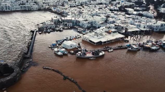 Οι εικόνες που κατέγραψε drone στην Πάρο, είναι ενδεικτικές της καταστροφής. Ο κεντρικός δρόμος που καταλήγει στη Νάουσα έχει μετατραπεί σε ένα απέραντο ποτάμι.